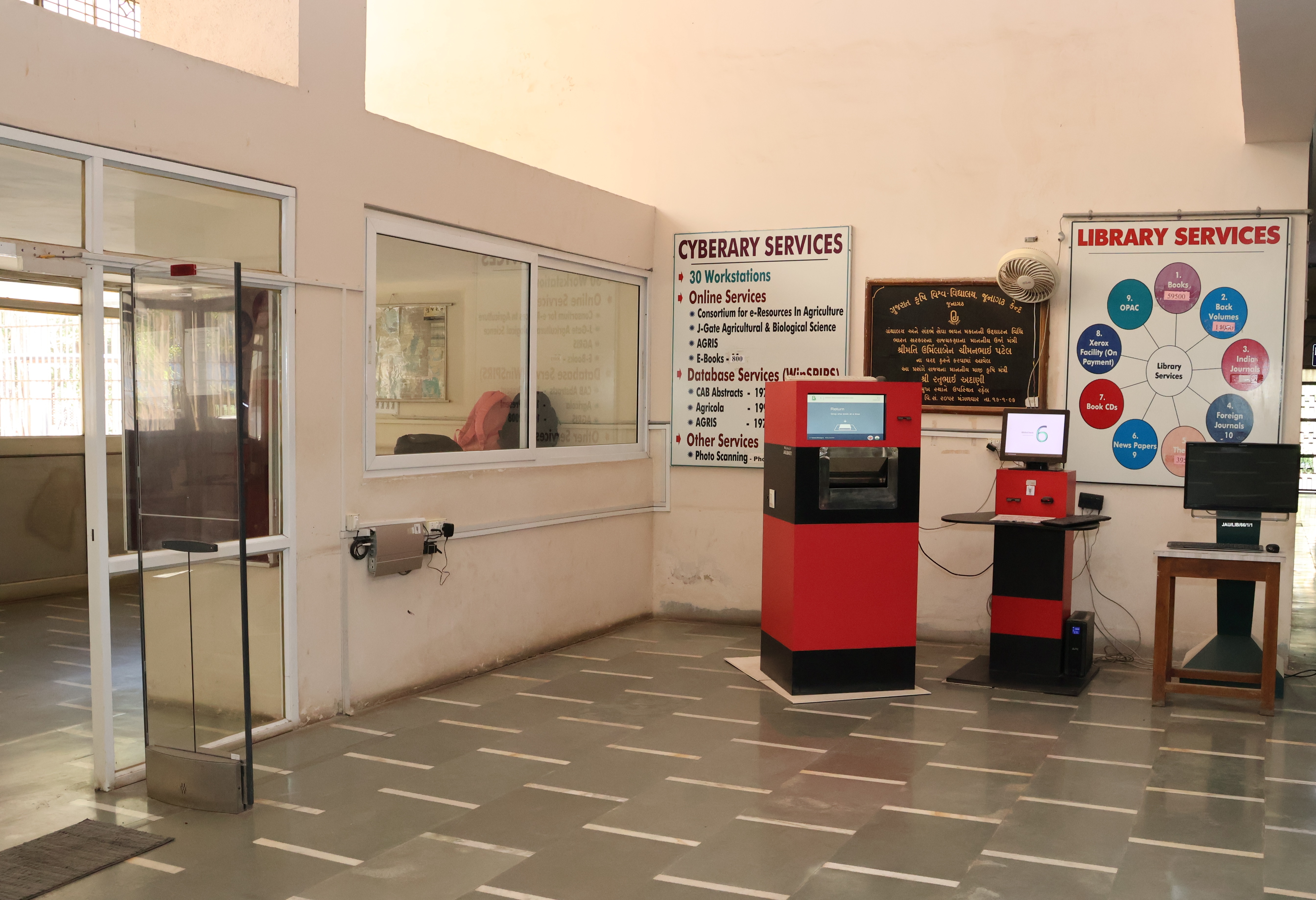 Cyberary with 100 Mbps LAN connectivity facilitates users to access online database like J-Gate PLUS (Complete) online which has full text Journals. Commodities (CMIE) which as economical data, CAB ABSTRACT Our library has 1037 e-books, facility by ICAR for foreign Journals through Online Access of Journals through Consortium for e-Resources in Agriculture (CeRA) and KRISHIKOSH are available as well as ONOS (One Nation One Subscription Facility by INFLIBNET is also Available ) and CD-ROM databases like CAB, AGRICOLA, AGRIS. The University Library is fully automized after the implementation of RFID (Radio-Frequency Identification System). Full time internet, scanning and CD writing facilities are available for the students in the Cyberary in which there are 40 work stations with internet access. These facilities are being extensively utilized by both faculty and students on an average of daily 50 to 300 users for about 12 hours per day. Since the year 2015, The Thakkar Memorial Trust has provided funding of Rupees 2.5 Lakh only to establish or support a BOOK BANK, aiming to facilitate access to educational materials for the students. This generous contribution helps students to issue necessary textbooks and educational resources (College wise on Rotation basis) for needy students who can borrow them, typically for the entire semester year. This year, 17 more books were purchased of Agriculture Engineering faculty for the Book bank and now 2592 Books were available in the Book bank. The Library runs through RFID with the software KOHA & LIBSYS.